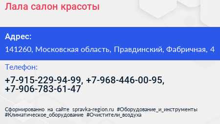 Лала, салон красоты по адресу 141260, Московская область, Правдинский, Фабричная, 4 в дальнейшем Организация, размещена в следующих категориях: