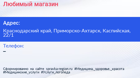 Любимый, магазин по адресу Краснодарский край, Приморско-Ахтарск, Каспийская, 22/1 в дальнейшем Организация, размещена в следующих категориях: