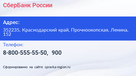 СберБанк России по адресу 352235, Краснодарский край, Прочноокопская, Ленина, 152 в дальнейшем Организация, размещена в следующих категориях: