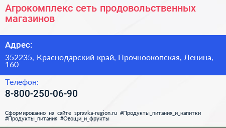 Агрокомплекс, сеть продовольственных магазинов по адресу 352235, Краснодарский край, Прочноокопская, Ленина, 160 в дальнейшем Организация, размещена в следующих категориях: