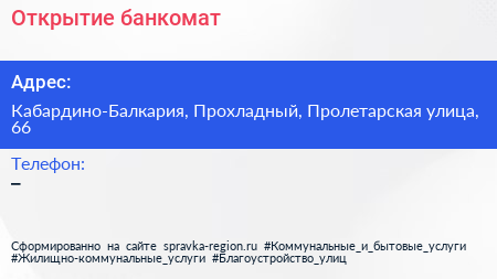 Открытие, банкомат по адресу Кабардино-Балкария, Прохладный, Пролетарская улица, 66 в дальнейшем Организация, размещена в следующих категориях: