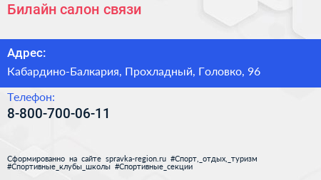 Билайн, салон связи по адресу Кабардино-Балкария, Прохладный, Головко, 96 в дальнейшем Организация, размещена в следующих категориях: