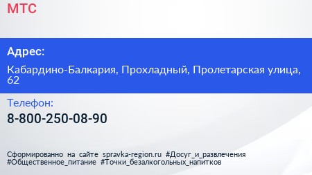 МТС по адресу Кабардино-Балкария, Прохладный, Пролетарская улица, 62 в дальнейшем Организация, размещена в следующих категориях: