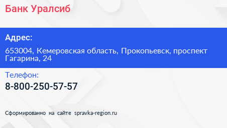 Банк Уралсиб по адресу 653004, Кемеровская область, Прокопьевск, проспект Гагарина, 24 в дальнейшем Организация, размещена в следующих категориях:
