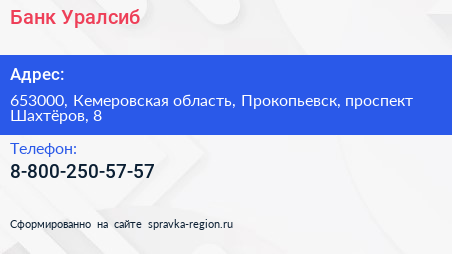 Банк Уралсиб по адресу 653000, Кемеровская область, Прокопьевск, проспект Шахтёров, 8 в дальнейшем Организация, размещена в следующих категориях: