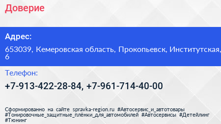 Доверие по адресу 653039, Кемеровская область, Прокопьевск, Институтская, 6 в дальнейшем Организация, размещена в следующих категориях: