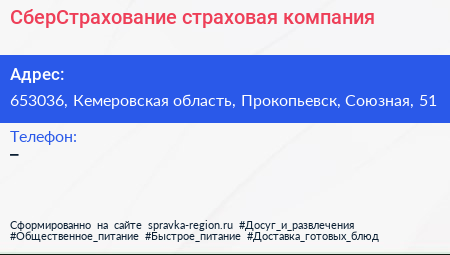 СберСтрахование, страховая компания по адресу 653036, Кемеровская область, Прокопьевск, Союзная, 51 в дальнейшем Организация, размещена в следующих категориях: