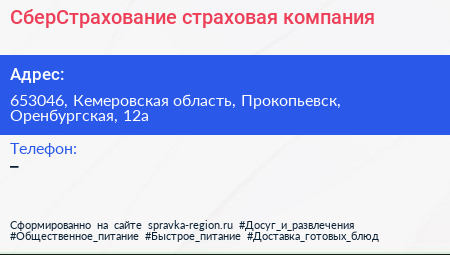 СберСтрахование, страховая компания по адресу 653046, Кемеровская область, Прокопьевск, Оренбургская, 12а в дальнейшем Организация, размещена в следующих категориях: