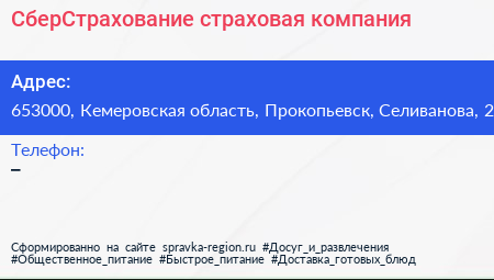 СберСтрахование, страховая компания по адресу 653000, Кемеровская область, Прокопьевск, Селиванова, 2 в дальнейшем Организация, размещена в следующих категориях: