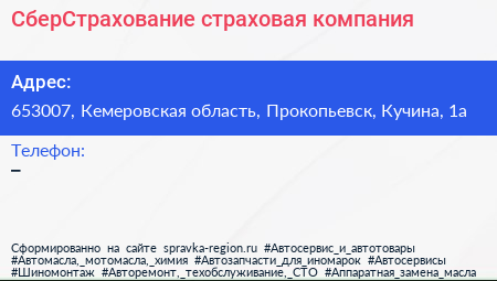 СберСтрахование, страховая компания по адресу 653007, Кемеровская область, Прокопьевск, Кучина, 1а в дальнейшем Организация, размещена в следующих категориях: