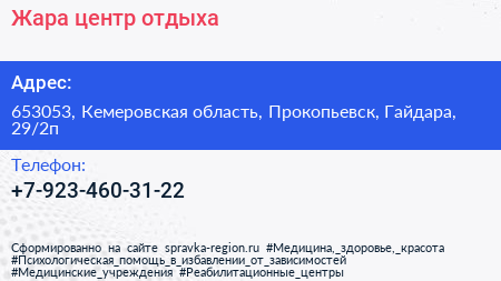 Жара, центр отдыха по адресу 653053, Кемеровская область, Прокопьевск, Гайдара, 29/2п в дальнейшем Организация, размещена в следующих категориях:
