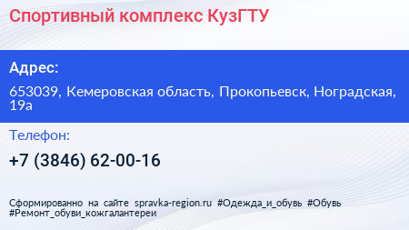 Адрес: Кемеровская область, Прокопьевск, проспект Ленина, 19