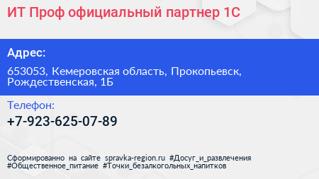 ИТ-Проф, официальный партнер 1С по адресу 653053, Кемеровская область, Прокопьевск, Рождественская, 1Б в дальнейшем Организация, размещена в следующих категориях: