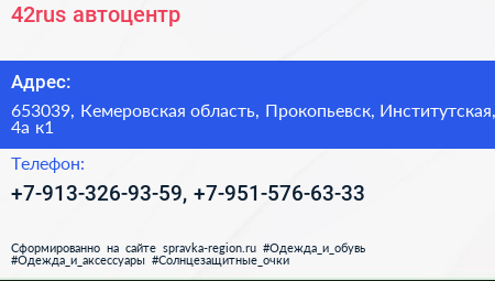 42rus, автоцентр по адресу 653039, Кемеровская область, Прокопьевск, Институтская, 4а к1 в дальнейшем Организация, размещена в следующих категориях: