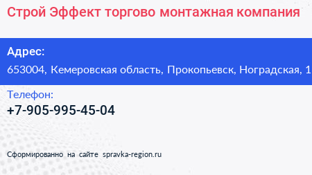 Строй-Эффект, торгово-монтажная компания по адресу 653004, Кемеровская область, Прокопьевск, Ноградская, 1 в дальнейшем Организация, размещена в следующих категориях: