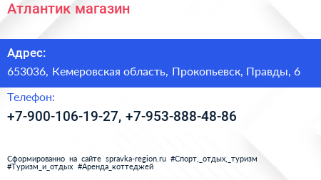 Атлантик, магазин по адресу 653036, Кемеровская область, Прокопьевск, Правды, 6 в дальнейшем Организация, размещена в следующих категориях: