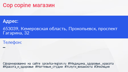 Cop.copine, магазин по адресу 653039, Кемеровская область, Прокопьевск, проспект Гагарина, 32 в дальнейшем Организация, размещена в следующих категориях: