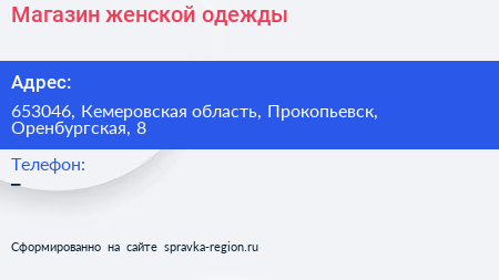 Магазин женской одежды по адресу 653046, Кемеровская область, Прокопьевск, Оренбургская, 8 в дальнейшем Организация, размещена в следующих категориях:
