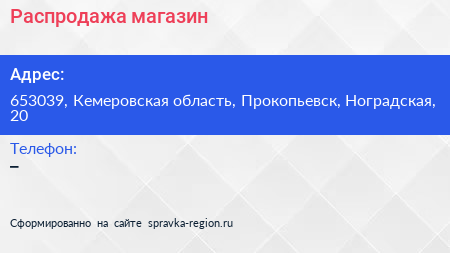 Распродажа, магазин по адресу 653039, Кемеровская область, Прокопьевск, Ноградская, 20 в дальнейшем Организация, размещена в следующих категориях:
