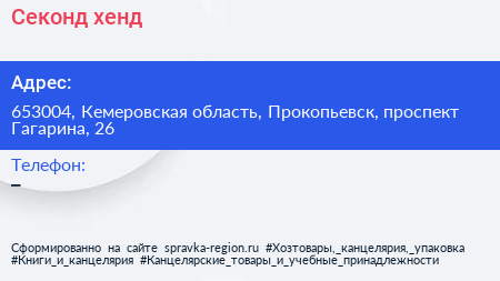 Секонд-хенд по адресу 653004, Кемеровская область, Прокопьевск, проспект Гагарина, 26 в дальнейшем Организация, размещена в следующих категориях: