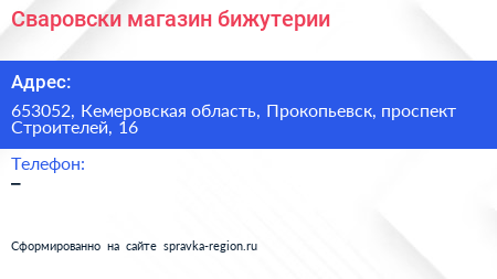 Сваровски, магазин бижутерии по адресу 653052, Кемеровская область, Прокопьевск, проспект Строителей, 16 в дальнейшем Организация, размещена в следующих категориях: