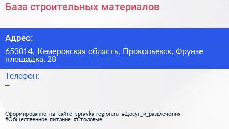 База строительных материалов по адресу 653014, Кемеровская область, Прокопьевск, Фрунзе площадка, 28 в дальнейшем Организация, размещена в следующих категориях: