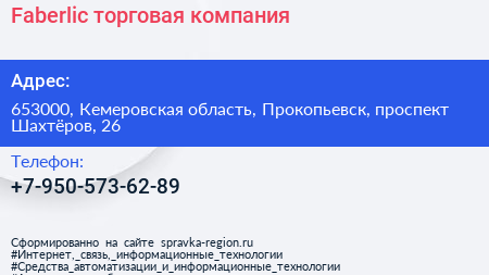 Faberlic, торговая компания по адресу 653000, Кемеровская область, Прокопьевск, проспект Шахтёров, 26 в дальнейшем Организация, размещена в следующих категориях: