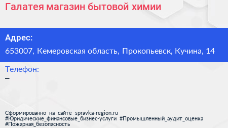 Галатея, магазин бытовой химии по адресу 653007, Кемеровская область, Прокопьевск, Кучина, 14 в дальнейшем Организация, размещена в следующих категориях: