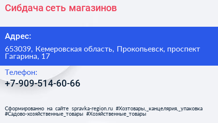 Сибдача, сеть магазинов по адресу 653039, Кемеровская область, Прокопьевск, проспект Гагарина, 17 в дальнейшем Организация, размещена в следующих категориях: