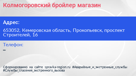 Колмогоровский бройлер, магазин по адресу 653052, Кемеровская область, Прокопьевск, проспект Строителей, 16 в дальнейшем Организация, размещена в следующих категориях:
