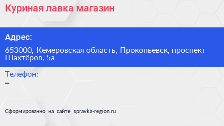 Куриная лавка, магазин по адресу 653000, Кемеровская область, Прокопьевск, проспект Шахтёров, 5а в дальнейшем Организация, размещена в следующих категориях: