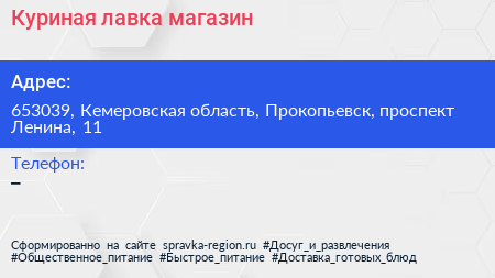 Куриная лавка, магазин по адресу 653039, Кемеровская область, Прокопьевск, проспект Ленина, 11 в дальнейшем Организация, размещена в следующих категориях: