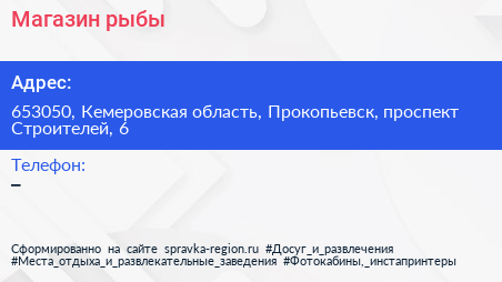 Магазин рыбы по адресу 653050, Кемеровская область, Прокопьевск, проспект Строителей, 6 в дальнейшем Организация, размещена в следующих категориях: