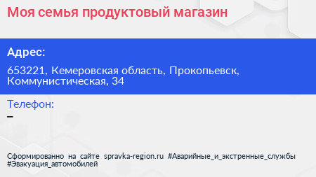 Моя семья, продуктовый магазин по адресу 653221, Кемеровская область, Прокопьевск, Коммунистическая, 34 в дальнейшем Организация, размещена в следующих категориях: