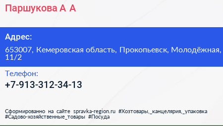 Паршукова А.А. по адресу 653007, Кемеровская область, Прокопьевск, Молодёжная, 11/2 в дальнейшем Организация, размещена в следующих категориях:
