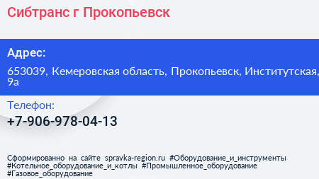 Сибтранс, г. Прокопьевск по адресу 653039, Кемеровская область, Прокопьевск, Институтская, 9а в дальнейшем Организация, размещена в следующих категориях:
