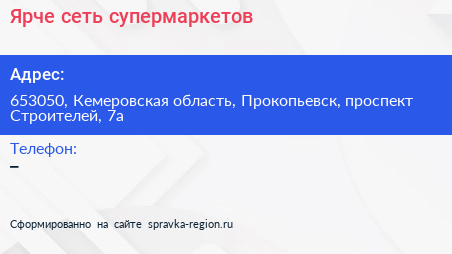 Ярче!, сеть супермаркетов по адресу 653050, Кемеровская область, Прокопьевск, проспект Строителей, 7а в дальнейшем Организация, размещена в следующих категориях: