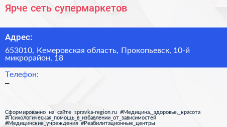 Ярче!, сеть супермаркетов по адресу 653010, Кемеровская область, Прокопьевск, 10-й микрорайон, 18 в дальнейшем Организация, размещена в следующих категориях: