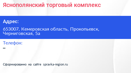 Яснополянский, торговый комплекс по адресу 653007, Кемеровская область, Прокопьевск, Черниговская, 5а в дальнейшем Организация, размещена в следующих категориях: