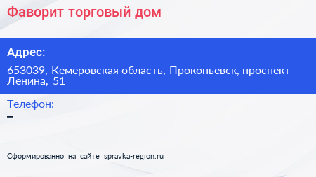 Фаворит, торговый дом по адресу 653039, Кемеровская область, Прокопьевск, проспект Ленина, 51 в дальнейшем Организация, размещена в следующих категориях: