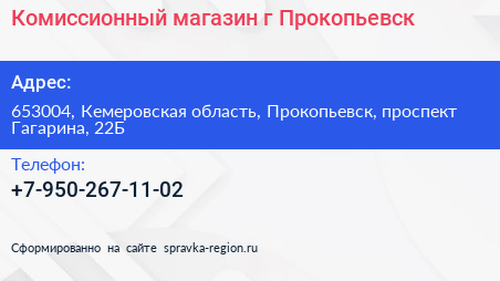 Комиссионный магазин, г. Прокопьевск по адресу 653004, Кемеровская область, Прокопьевск, проспект Гагарина, 22Б в дальнейшем Организация, размещена в следующих категориях: