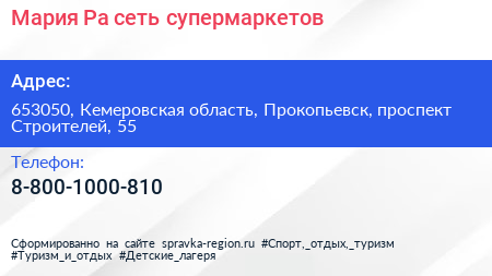 Мария-Ра, сеть супермаркетов по адресу 653050, Кемеровская область, Прокопьевск, проспект Строителей, 55 в дальнейшем Организация, размещена в следующих категориях: