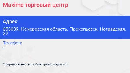 Maxima, торговый центр по адресу 653039, Кемеровская область, Прокопьевск, Ноградская, 22 в дальнейшем Организация, размещена в следующих категориях: