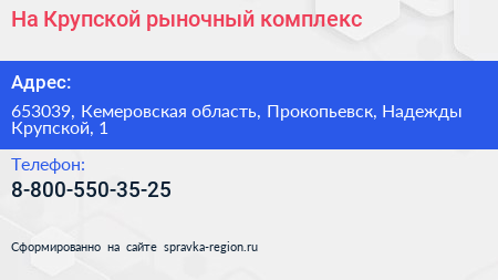 На Крупской, рыночный комплекс по адресу 653039, Кемеровская область, Прокопьевск, Надежды Крупской, 1 в дальнейшем Организация, размещена в следующих категориях: