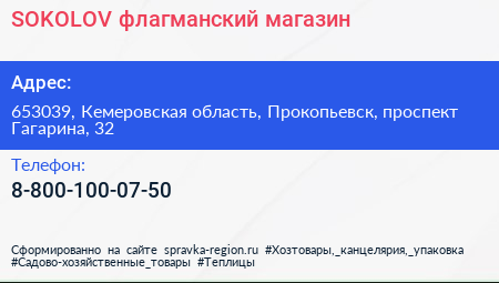 SOKOLOV, флагманский магазин по адресу 653039, Кемеровская область, Прокопьевск, проспект Гагарина, 32 в дальнейшем Организация, размещена в следующих категориях: