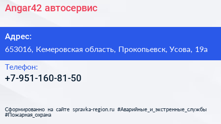 Angar42, автосервис по адресу 653016, Кемеровская область, Прокопьевск, Усова, 19а в дальнейшем Организация, размещена в следующих категориях: