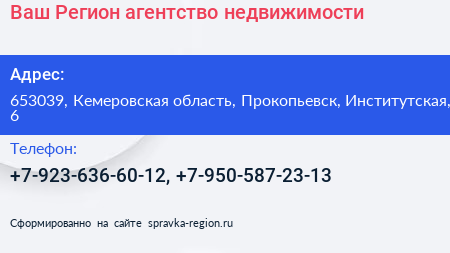 Ваш Регион, агентство недвижимости по адресу 653039, Кемеровская область, Прокопьевск, Институтская, 6 в дальнейшем Организация, размещена в следующих категориях: