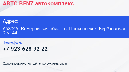 АВТО-BENZ, автокомплекс по адресу 653045, Кемеровская область, Прокопьевск, Берёзовская 2-я, 44 в дальнейшем Организация, размещена в следующих категориях: