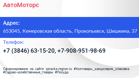 АвтоМоторс по адресу 653045, Кемеровская область, Прокопьевск, Шишкина, 37 в дальнейшем Организация, размещена в следующих категориях: