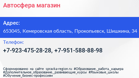 Автосфера, магазин по адресу 653045, Кемеровская область, Прокопьевск, Шишкина, 34 в дальнейшем Организация, размещена в следующих категориях: